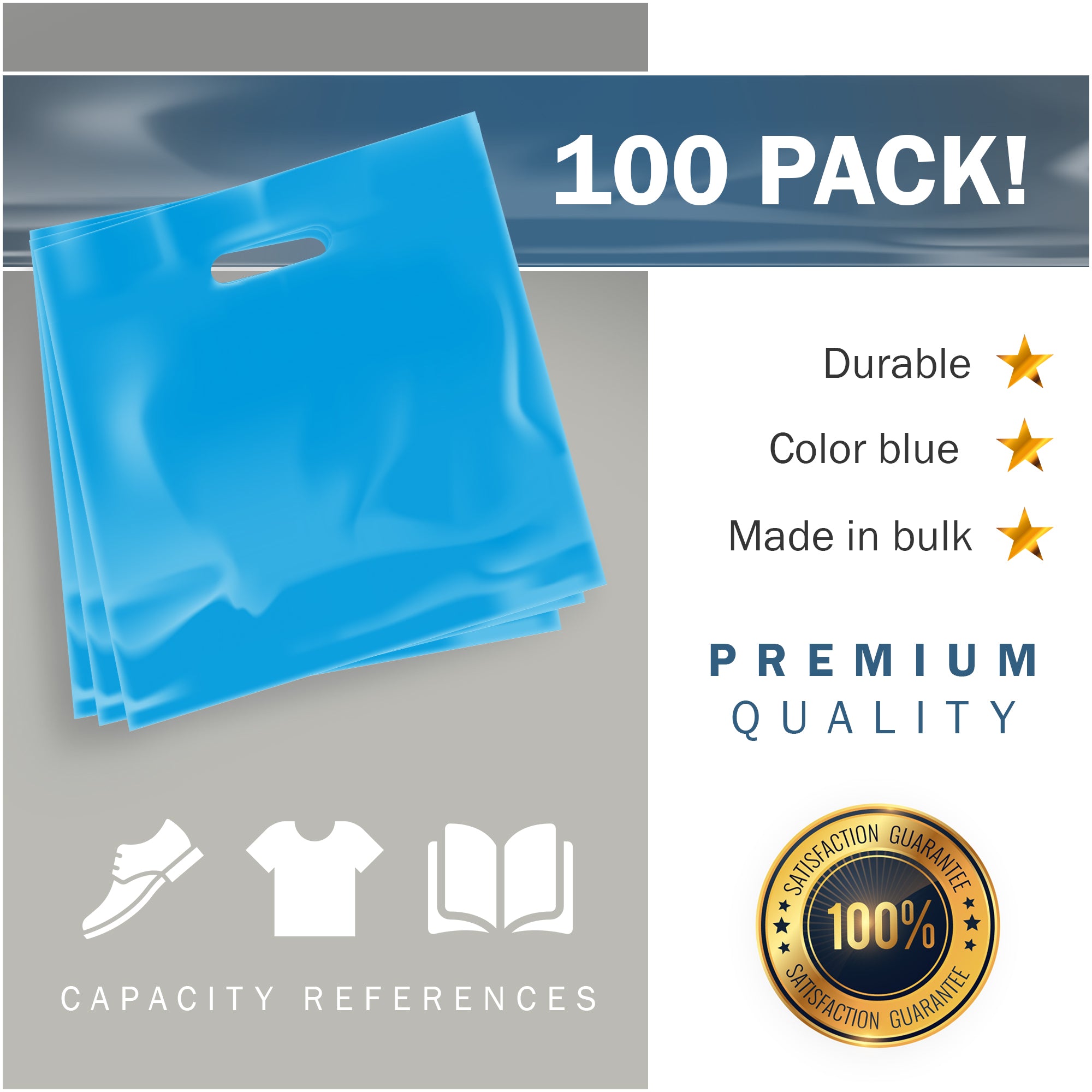 💯 Pack of 100 Blue Glossy Bags Die Cut Handles, Measures: 16" x 18" with 2 Thickness